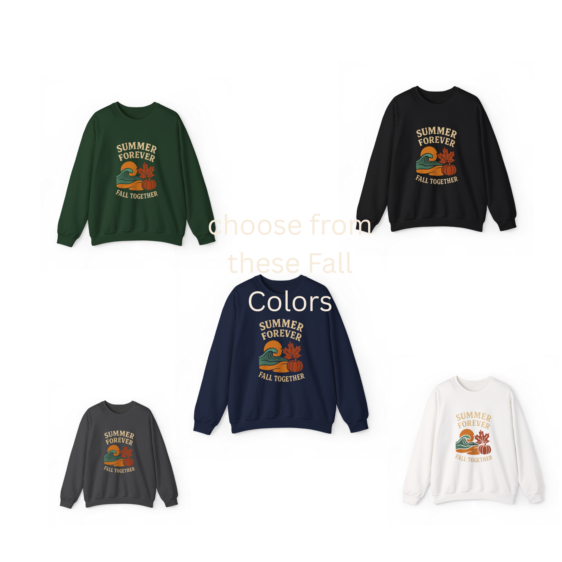 Cozy Fall Sweatshirt: Summer Forever Fall Together, Unisex Crewneck, Autumn Fashion, Seasonal Gift, Casual Wear
