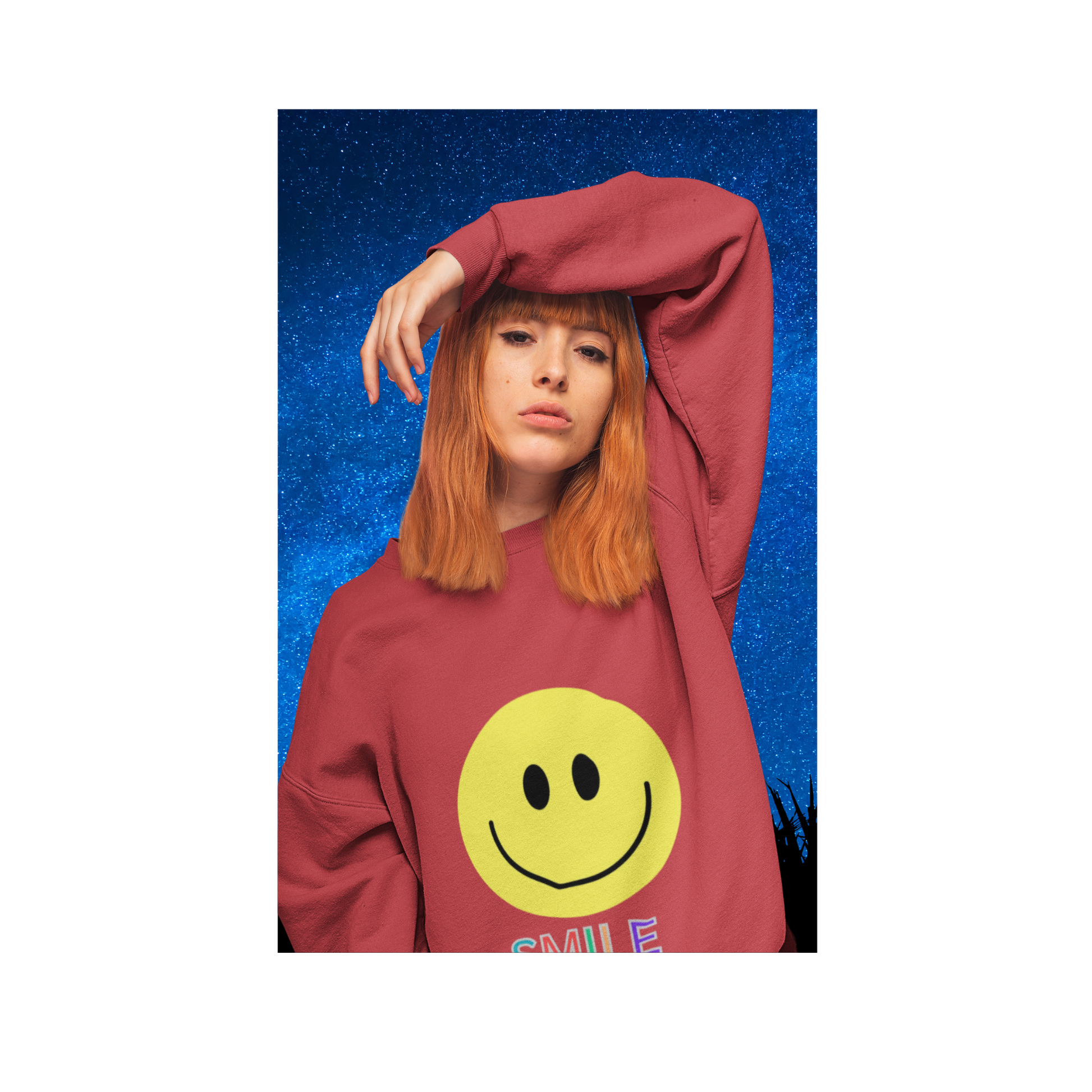 Smile Graphic Crewneck Sweatshirt, Unisex Smile Sweater, Cozy Gift for Him/Her, Cute Loungewear, Positive Vibes Apparel