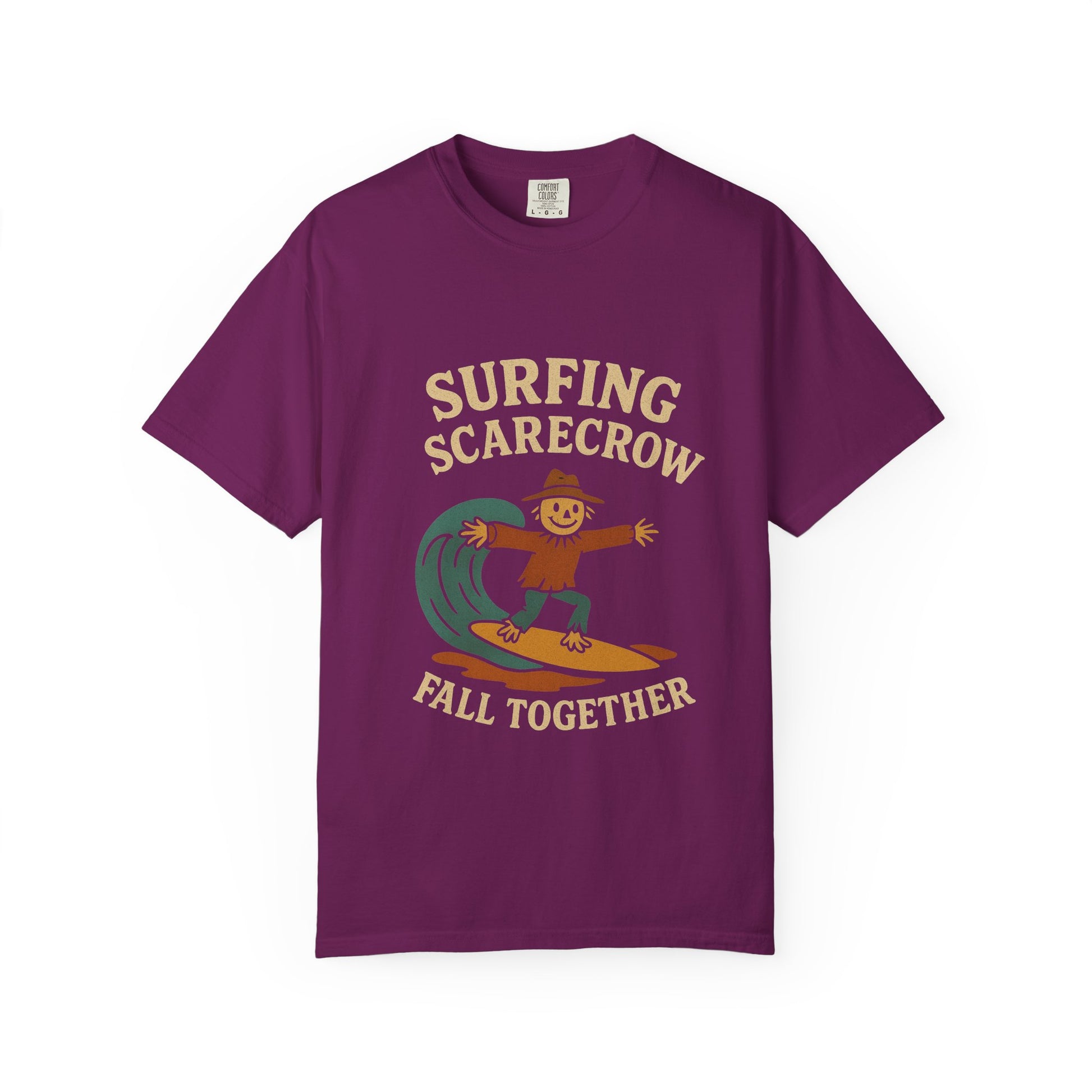 Surfing Scarecrow Unisex Garment-Dyed T-Shirt, designed to bring comfort and style to your everyday wardrobe. This shirt features a relaxed fit and soft textures, perfect for lounging, running errands, or casual outings with friends.
